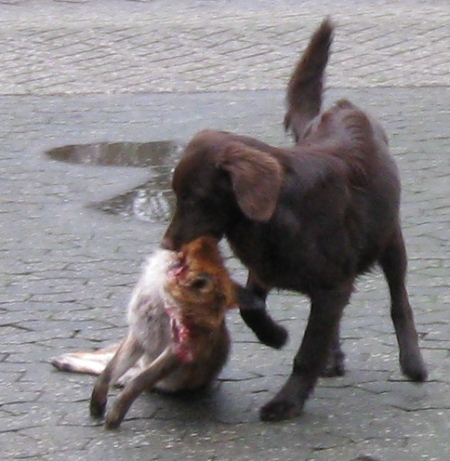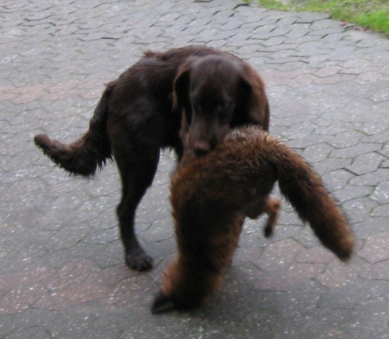 muss und stöbert weiter. Steine, ein Schuss in Richtung tote Ente, nichts